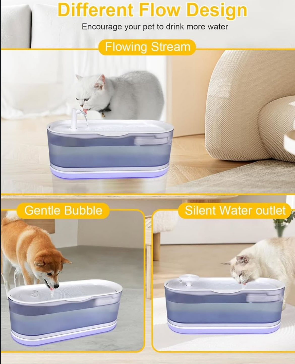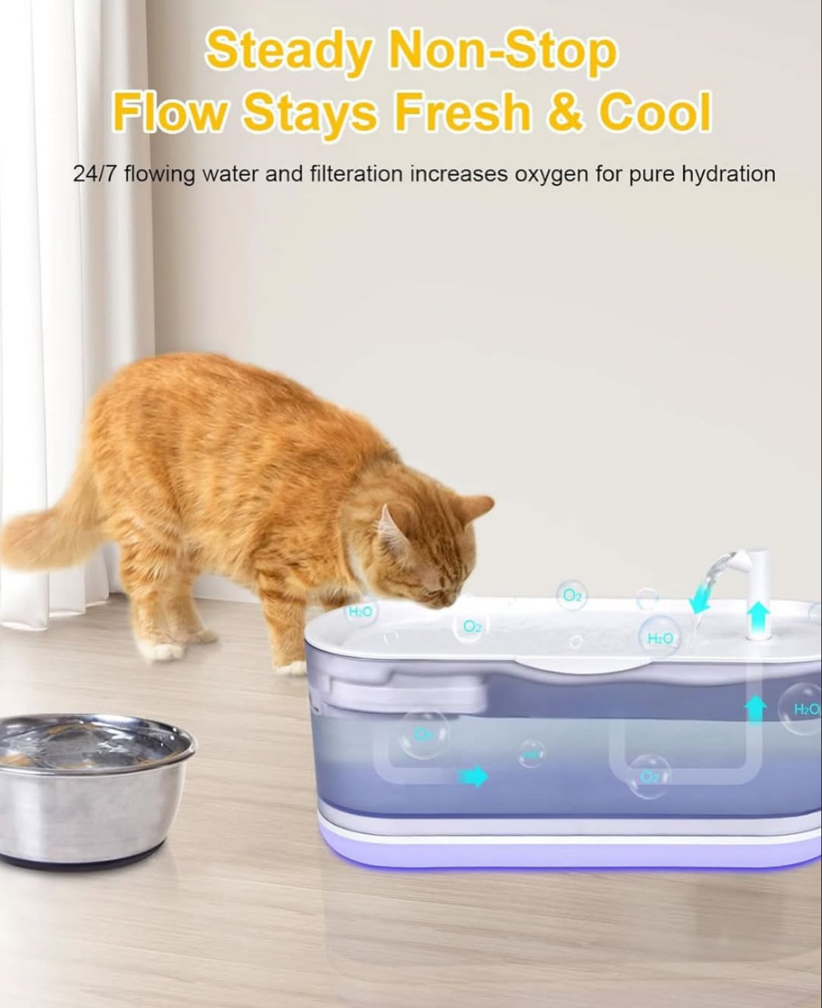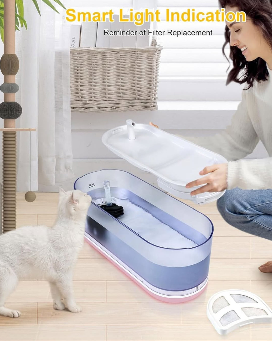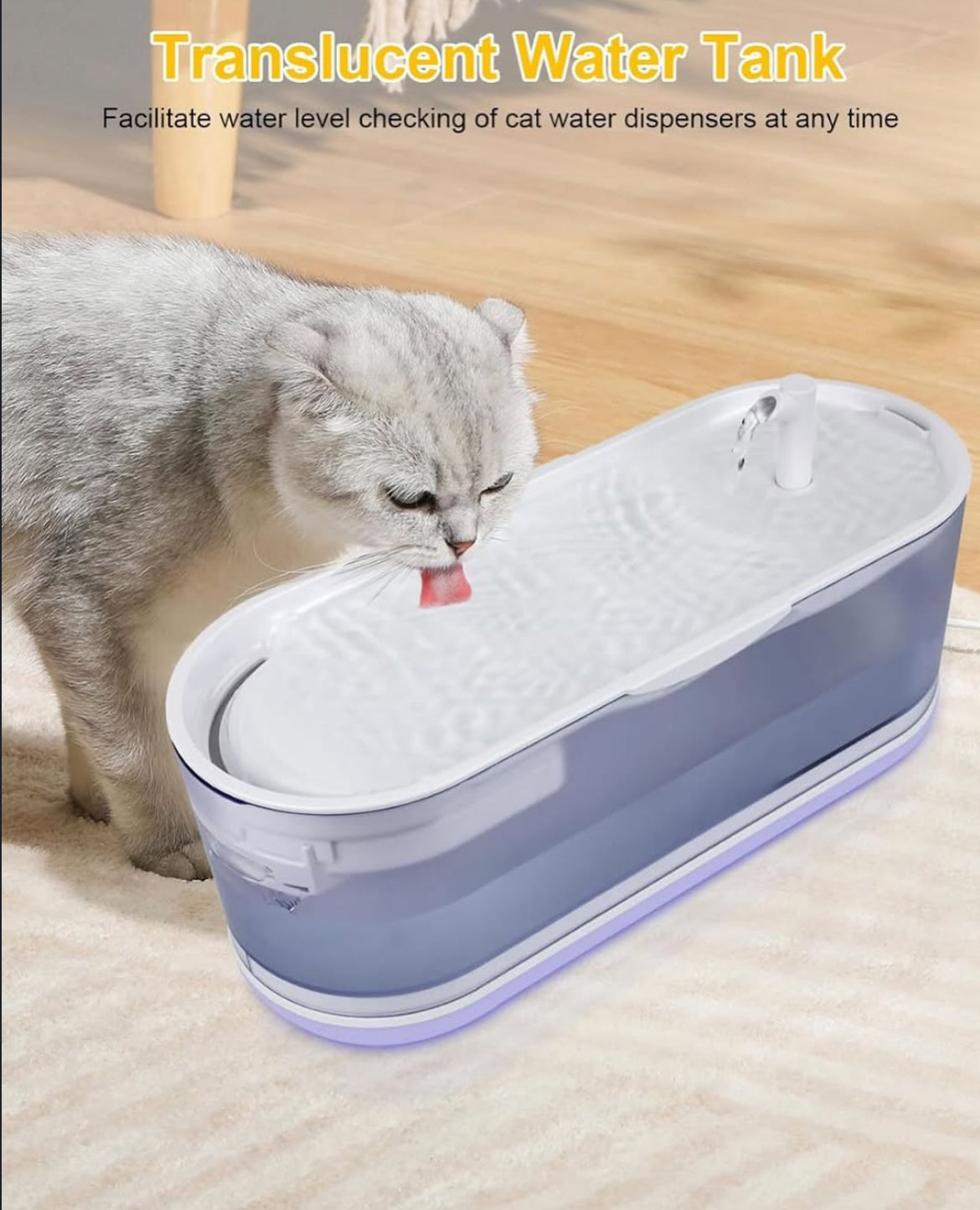 ✨• Fuente de agua translúcida para gatos: Facilite la verificación del nivel de agua de los dispensadores de agua en cualquier momento, monitoreo diario del consumo de agua de sus amigos peludos y recargas de agua cuando el agua restante de la fuente para mascotas disminuye. No hay necesidad de desenchufar, simplemente levanta el tanque de agua de la base para recargar y limpiar rápidamente.