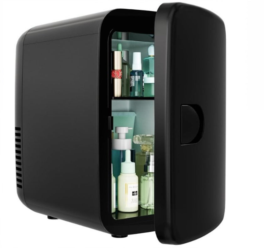EUHOMY tiene una capacidad de 4 litros y puede almacenar hasta seis 12 onzas. latas. Ideal para almacenar productos de maquillaje y cuidado de la piel por igual, este mini refrigerador compacto también está disponible en una variedad de colores modernos para adaptarse a su estética y uso únicos. Es adecuado para dormitorios, automóviles, oficinas, dormitorios, viajes por carretera, barcos, campamentos, etc