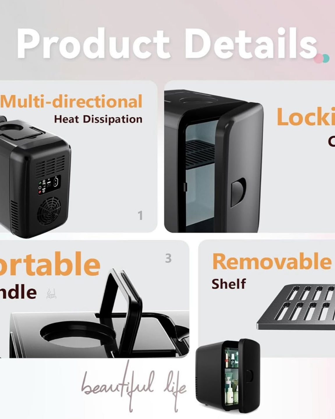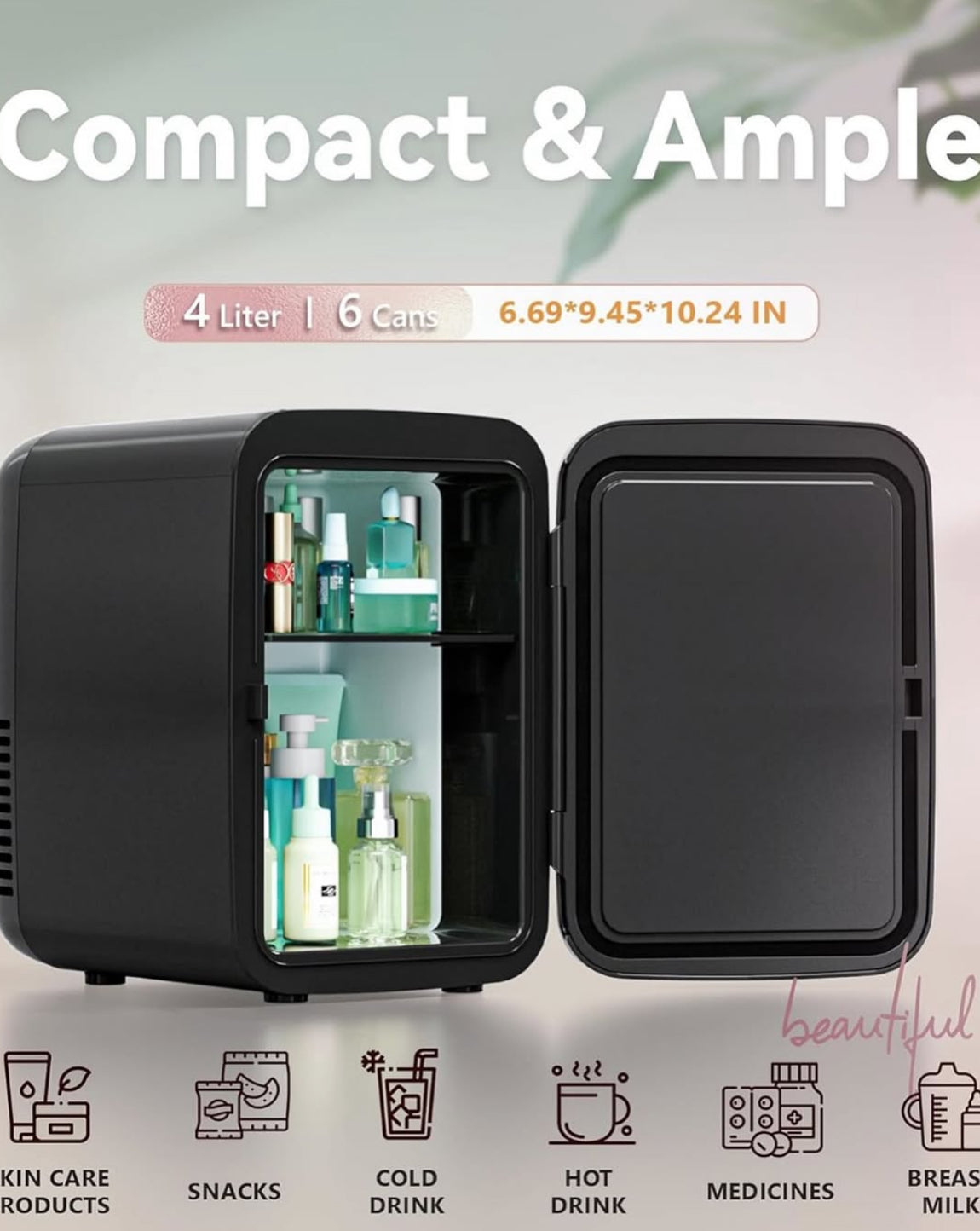 ✨Ecológico y bajo nivel de ruido: use semiconductores avanzados que estén libres de CFC y refrigerantes. Y el chip es más potente, duradero y más eficiente energéticamente. El refrigerador de maquillaje mantiene el sonido al mínimo (38 decibelios) y es adecuado para colocar en dormitorios y oficinas, lo que hace que tu uso sea más cómodo y no interfiera con tu trabajo y descanso