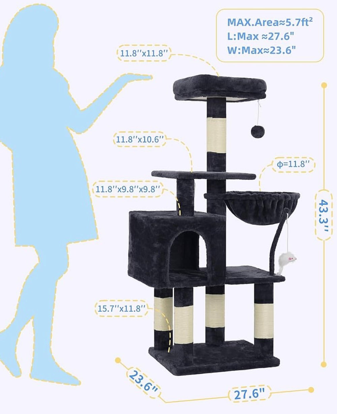 ✨Plataforma superior espaciosa y extraíble: la plataforma superior bien acolchada es adecuada para gatitos. Pueden acostarse en este espacio suave como una cama para dormir, observar y descansar.