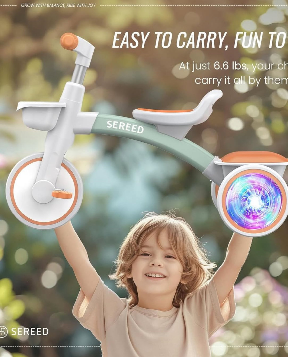 ✨Ligero y resistente: los materiales superiores hacen que todo el triciclo pese solo 6.6 libras, pero sigue siendo altamente robusto, los niños pueden moverlo a cualquier lugar que quieran por su cuenta.